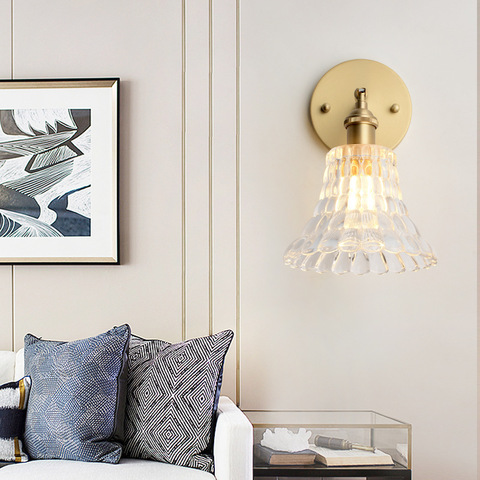 โคมไฟคริสตัลติดผนังสไตล์ยุโรปทันสมัยโคมไฟแก้วข้างเตียงเก๋ไก๋เก๋ไก๋สำหรับทางเดินห้องนอนและห้องนั่งเล่นขายส่ง
