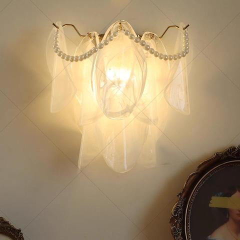 โคมไฟติดผนังในร่มแบบมินิมอลโคมไฟแก้วทรงดอกไม้ LED โคมไฟติดผนังสำหรับห้องนอนข้างไฟ2025ดีไซน์ใหม่